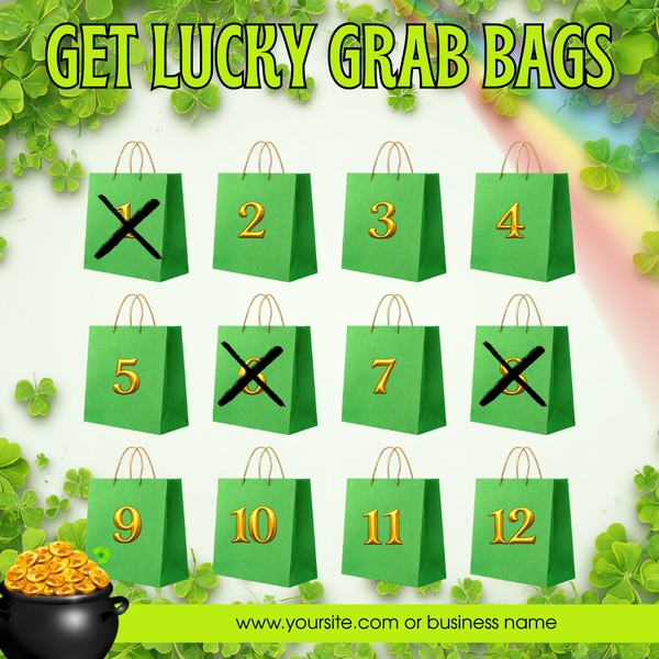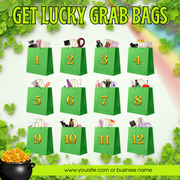 Super simple Grab Bags! They are $39 each, with the option of a $30 upgrade ☘️ Feel free to adjust pricing based on your customers, and they can purchase as many bags as they'd like.