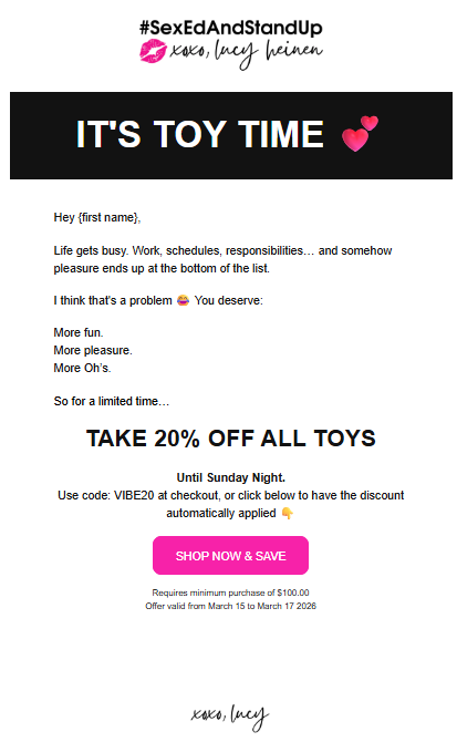 Depending on your goal and comfort level, if there's an email that talks about a certain type of product, or let's say Menopause, you can create a Collection for "Menopause" and link that as your button. So instead of a Shop Now button that takes them to your home page, it would directly take them to the 5 curated Menopause recommendations, making searching and shopping easier 😉 - Eye catching graphics
