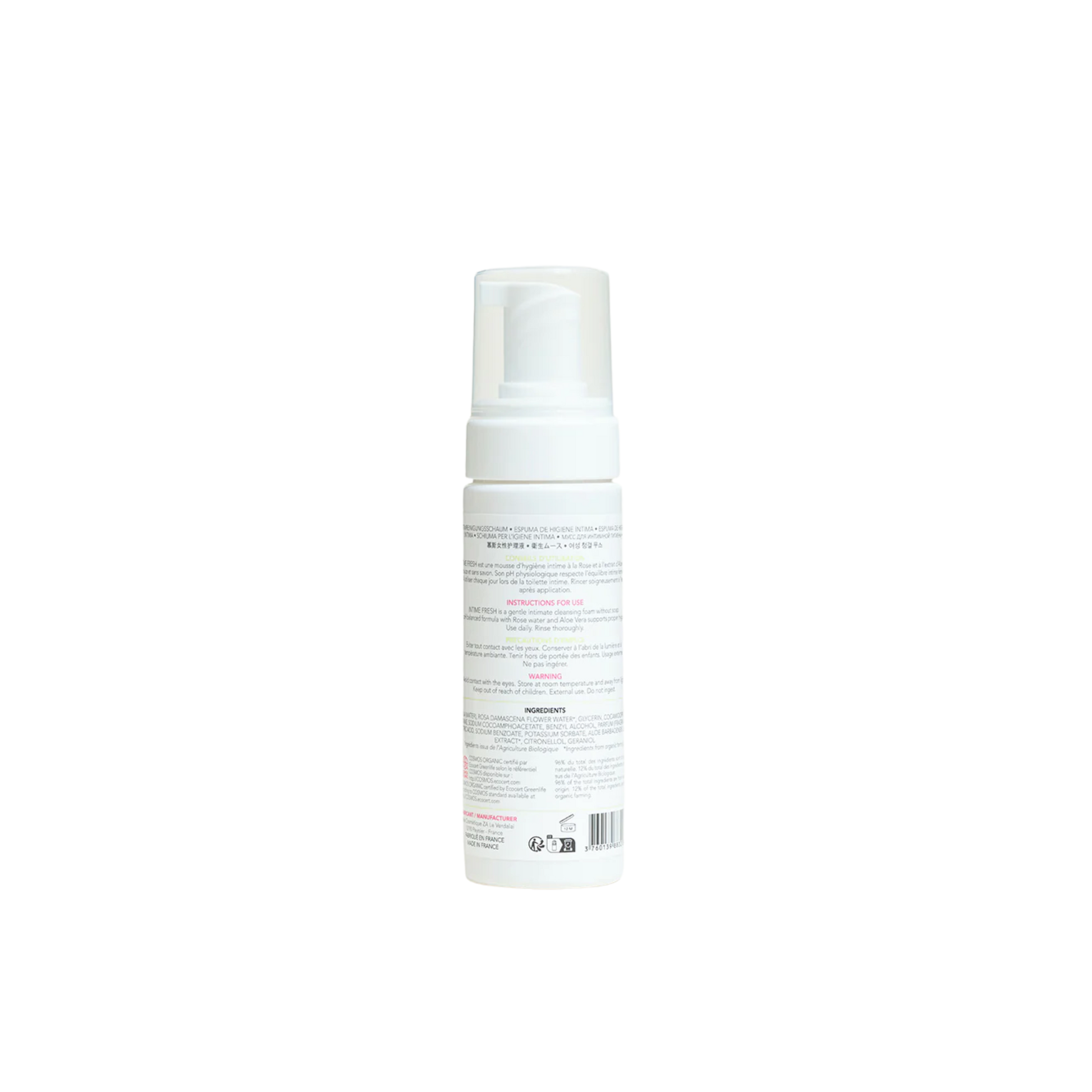Intime Fresh Intimate Cleansing Foam is made with organic aloe vera extract and organic rose water. Soft, soap-free and pH balanced, Intime Fresh is gentle enough for everyday use or just for when you want to feel a little refreshed!