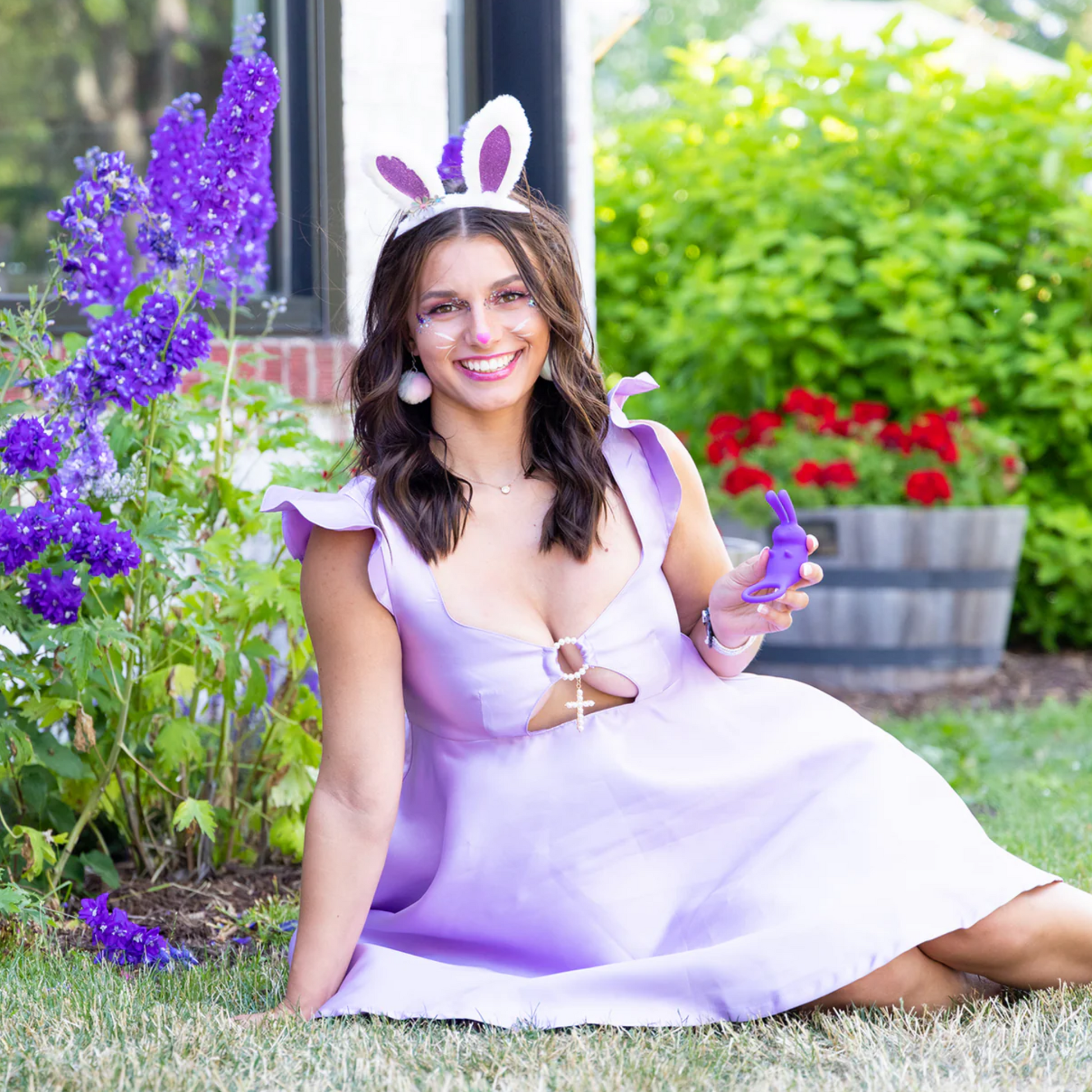 The Cock Hopper will make you wiggle and twitch in pleasure! You will be binkying like a bunny! So, hop on in and see what the excitement is all about! The Cock Hopper is a cock ring and rabbit bullet vibrator. Targeted for external stimulation, this toy can be used for penis & scrotum stimulation or penis & clitoral stimulation. The Cock Hopper can also be used as a standard bullet anywhere on the body with the twin tip rabbit ears, as a grinding toy or a palm toy for anyone with grip issues. Place The Cock Hopper on the base of a dildo or vibrator for heightened sensations. The limits truly are endless with this multi-function toy! Directions: For penis & scrotum play, attach the ring around the base of the penis with the rabbit upside down. For penis & clitoral play, place the ring around the base of the penis with the rabbit facing up. For palm play, stick two fingers in the ring or cup the entire toy in palm. For dildo play, place on the base of dildo or vibrator at desired height.
