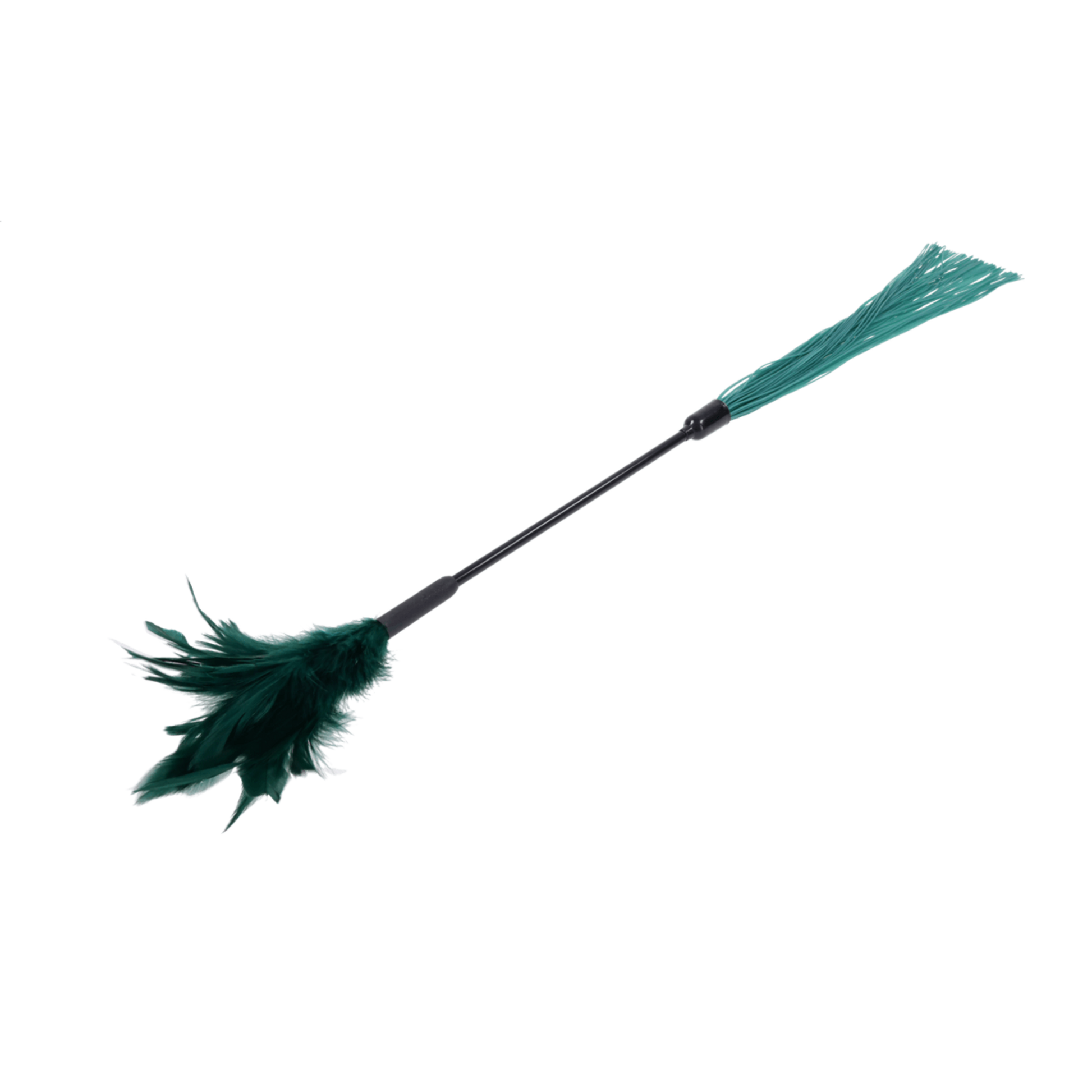 Explore the art of contrast. The Indica Feather Tickler is a dual-ended tool that teases and tantalizes with every stroke. One side features soft green feathers for delicate sensory play, while the other delivers a light sting with flexible silicone falls. Use it to awaken nerve endings, set the mood, or surprise your partner with an unexpected switch in sensation. It's a two-in-one treat designed for touch you won't forget.